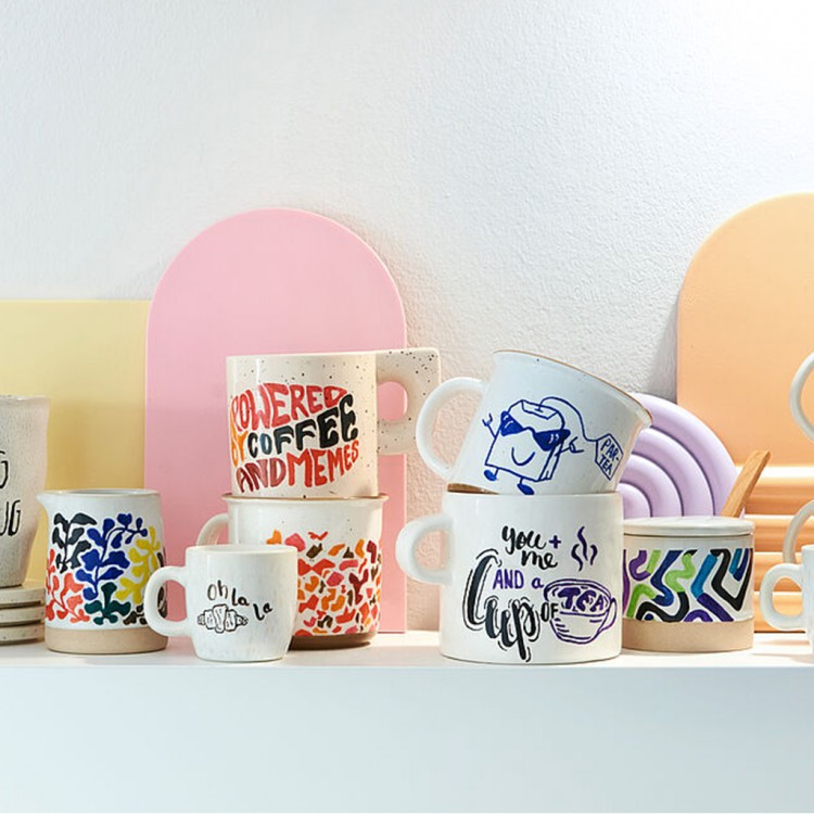 Whether it be mugs, ornaments or eggcups, the New edding 4200 porcelain brushpens are ideal for decorating on porcelain with brilliant colour results. The ink is also great for use on glazed ceramic and heat-resistant glass.