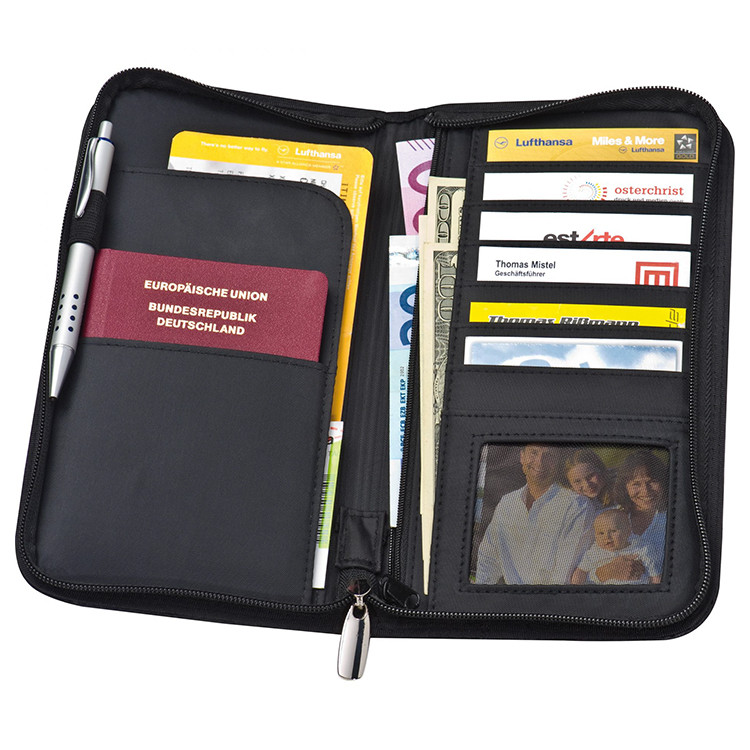 Bonded-leather travel wallet. Always have your travel documents at hand.