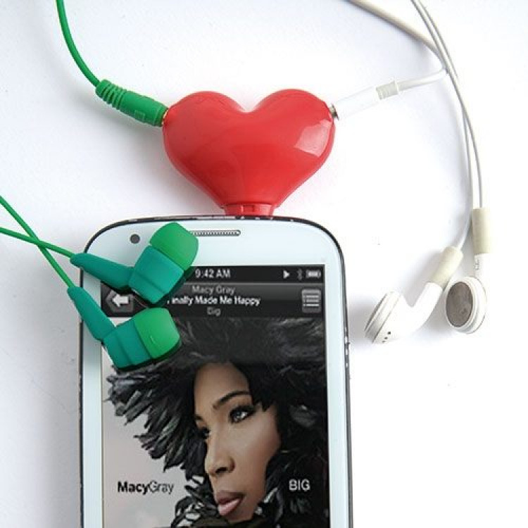Mobile phone stand with two headphones sockets