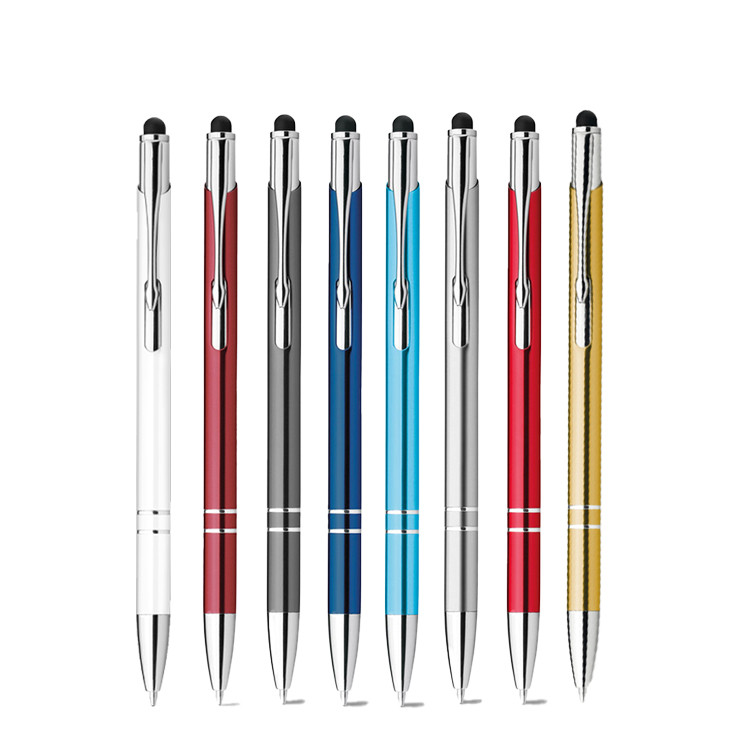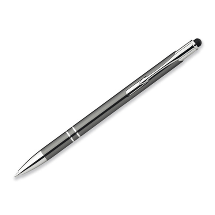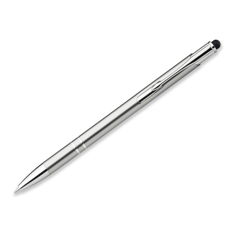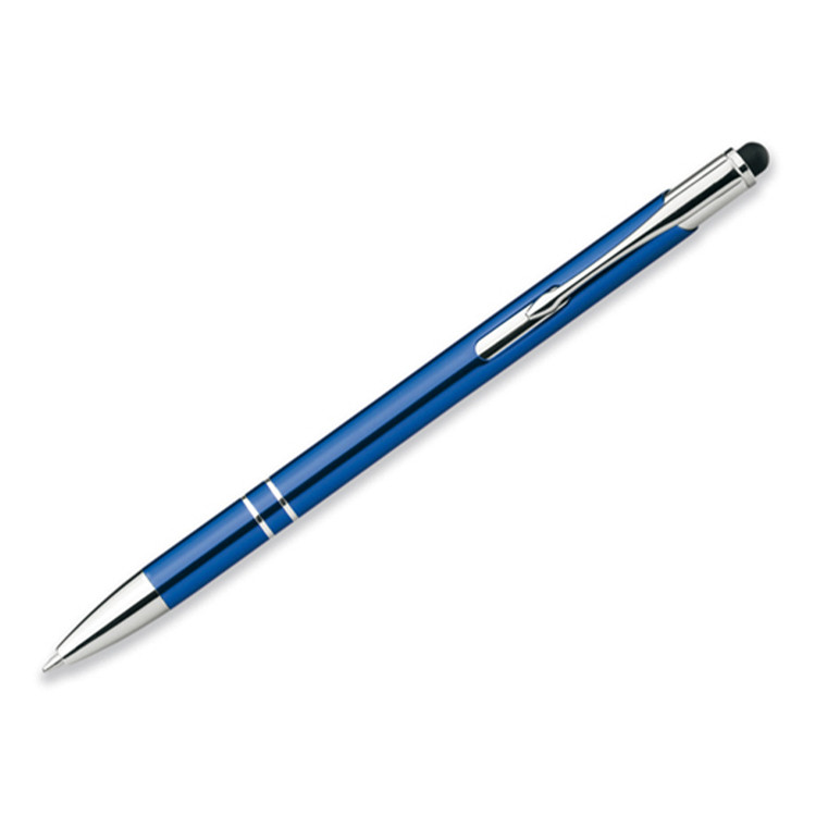 A stylish metal ballpoint pen with blue ink and a touch function for touchscreen devices, designed to meet the needs of modern professionals.
