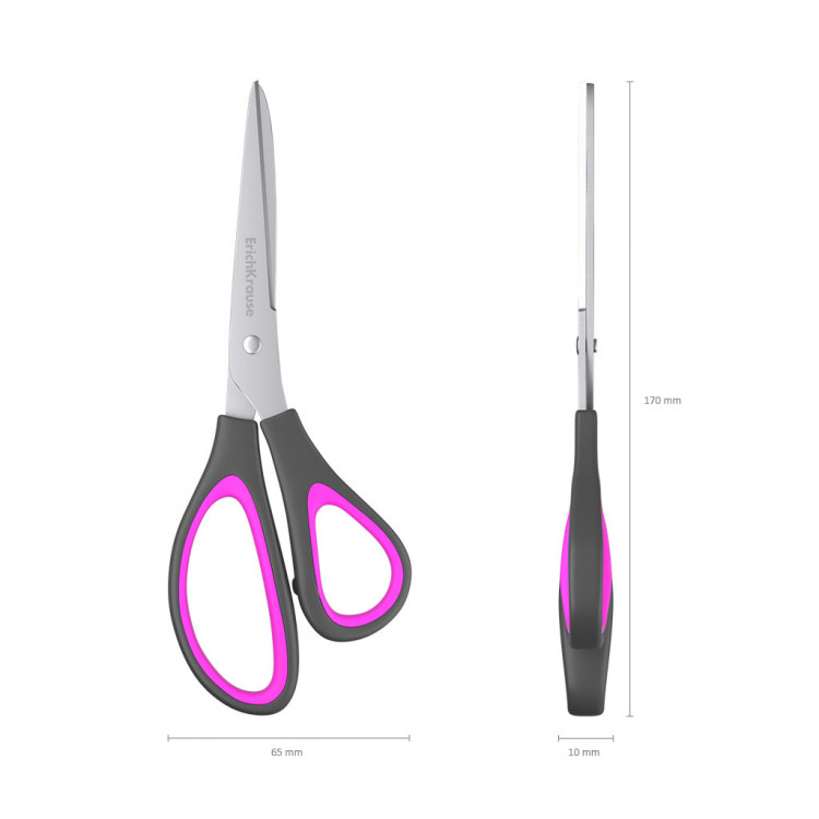 Scissors with high quality stainless steel blades and advanced double sharpening provide easy cutting of maximum scope of sheets. Corrosion-resistant. Ergonomic shape handles made of impact-resistant plastic and anti-slip inserts.