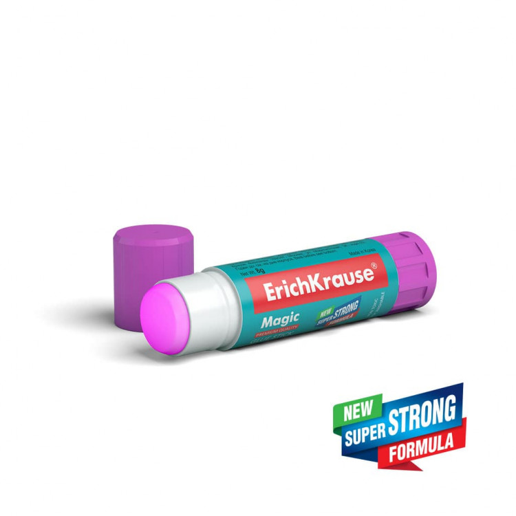 Glue stick with new extra strong PVP-based formula, fast and reliable effect. Leaves a colored trace when applied, which gradually disappears. This temporarily visible layer makes it possible to monitor where the product has been applied. Economical in use. Comes off easily with water. Non-toxic. Does not contain solvents. Frost-resistant. Suitable for paper, cardboard, and fabric.