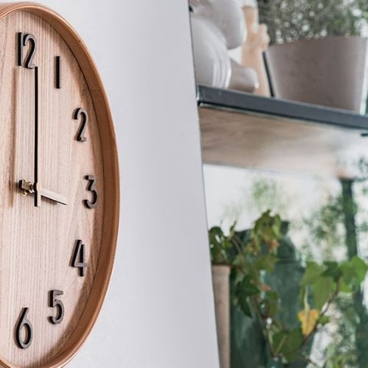 – This wall clock features hour and minute hands and wooden numerals