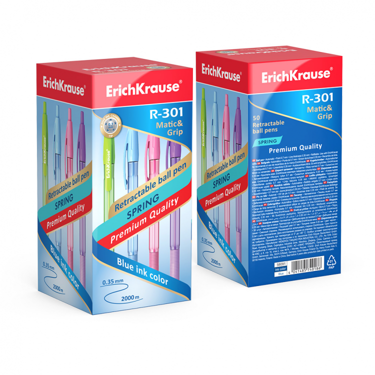 Retractable ballpoint pen ErichKrause® R-301 Spring Matic 0.7, ink color: blue (box 50 pcs.)
