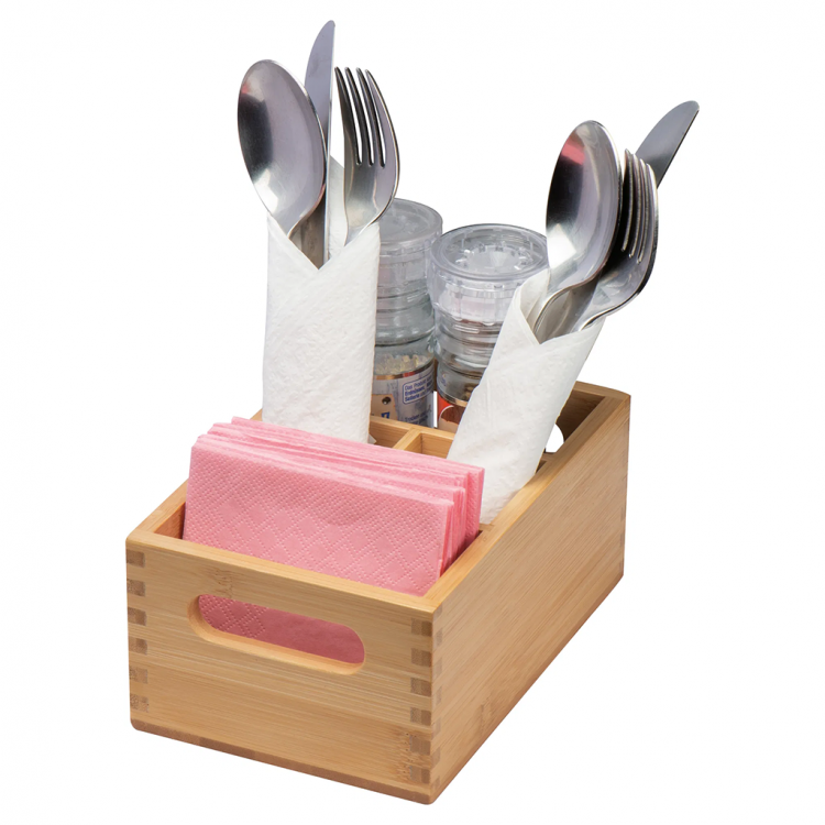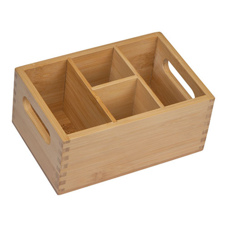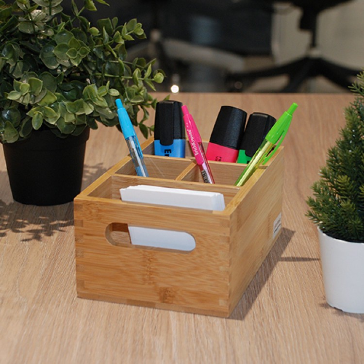 Large bamboo box for holding pens and pencils with a compartment for paper notes (10 x 10cm)