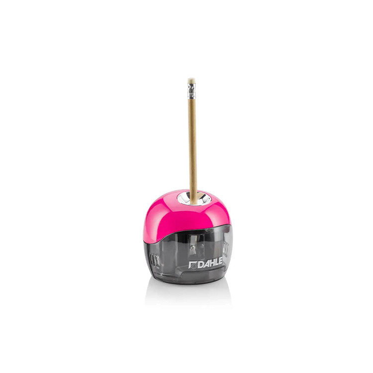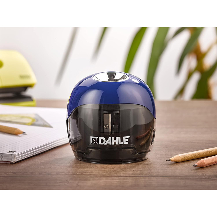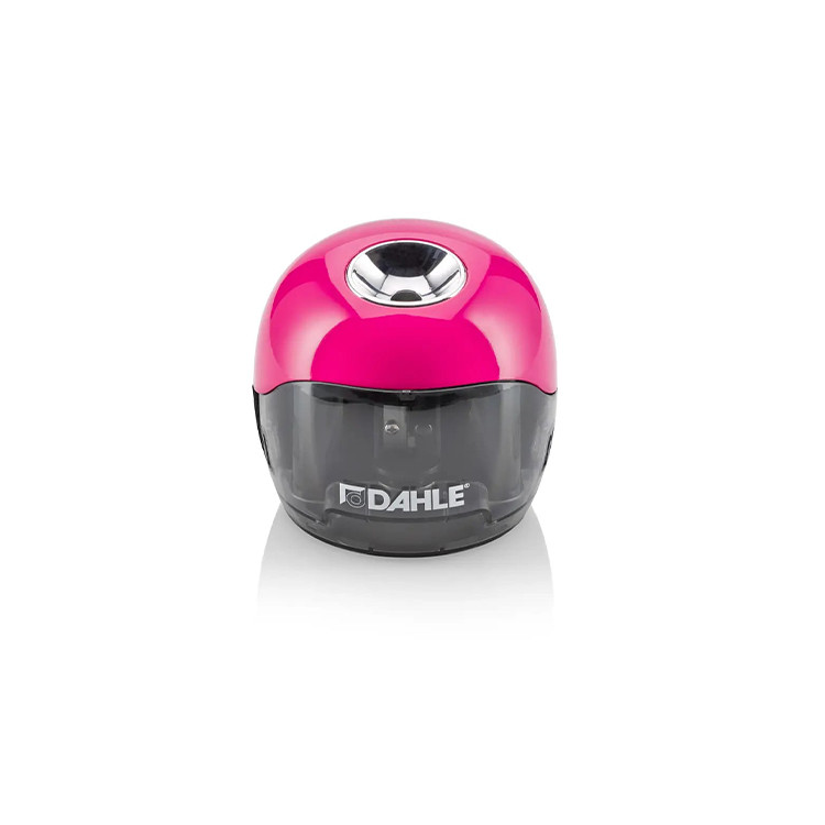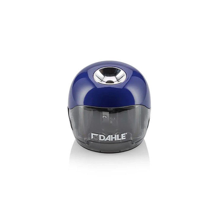 The Dahle 250 Electric Sharpener features a large volume see-through sawdust container that ensures ease of use. With two opposing sharp blades, the sharpening process is quick and efficient. Battery operated and measuring 82mm in height and 85mm in diameter, weighing 155 grams (without batteries), this sharpener is made of durable plastic in blue or pink. Designed exclusively for sharpening pencils and crayons, noting that the thickness of the pencils should not exceed the specified limit to avoid damage. You can clean the partitions with a soft, dry cloth and a brush. The sharpener is easy to use, just insert the pencil vertically into the top slot and the sharpener will do the rest.The chip ejection process is simple, just pull the container forward and then pull the empty container back into the sharpener until it clicks into place. This electric sharpener combines efficiency and ease of use, making it ideal for everyday use.
