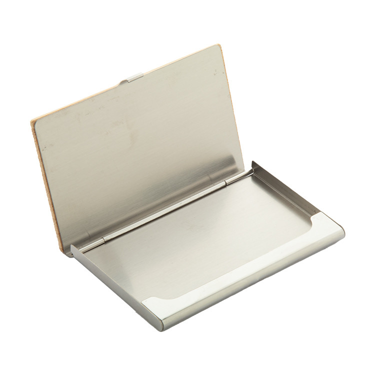 Bamboo covered metal business card holder.