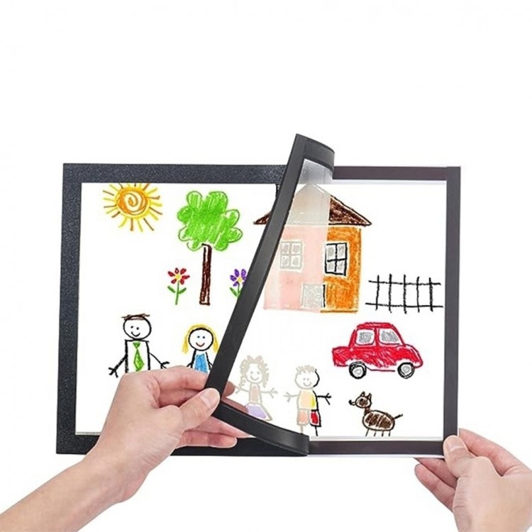 Сјајниот антирефлективен филм го држи отпечатокот со магнетни ленти прикачени на него и на рамката.