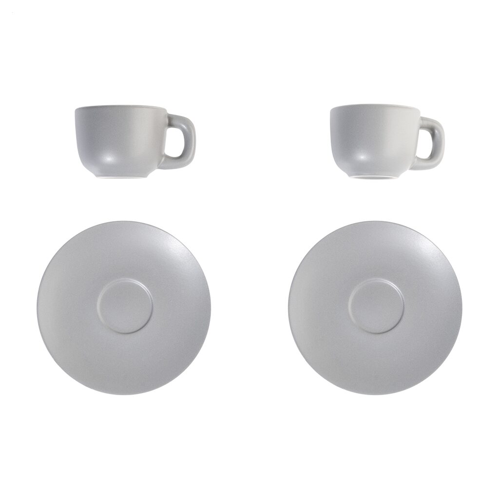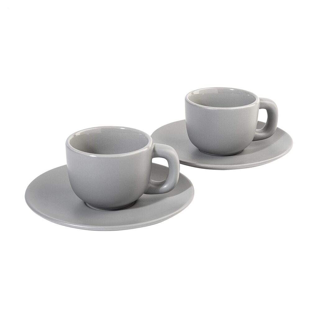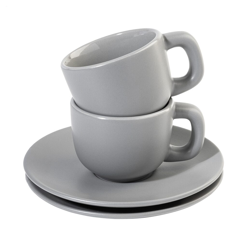 Елегантен сет од две керамички чаши за еспресо со тацна. Достапен во повеќе бои, совршен за канцеларија, угостителство или подарок.