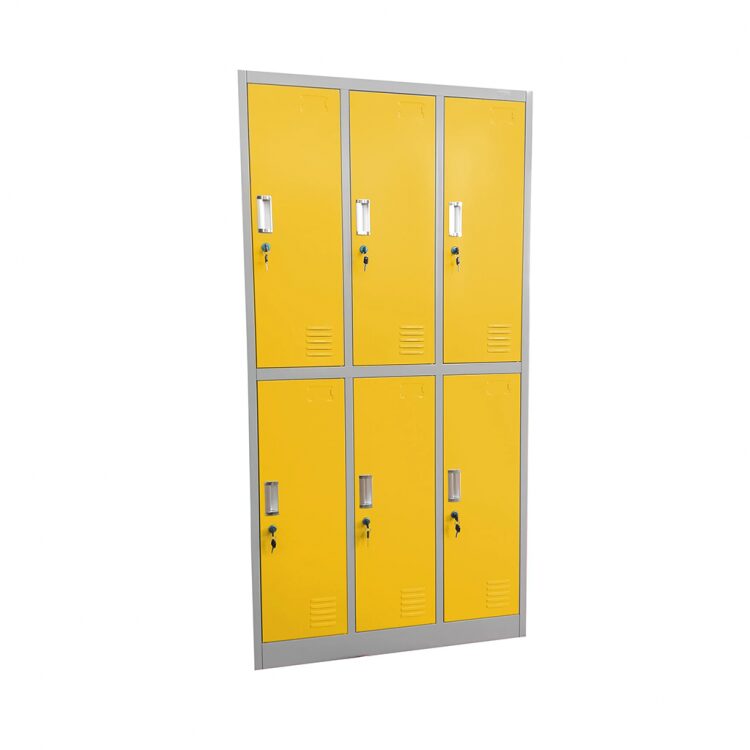 This metal locker with six compartments and six doors is a practical and secure solution for organized storage of personal belongings and clothing in offices, locker rooms, schools, sports facilities, factories, and warehouses. Made of high-quality steel with a powder-coated finish, the locker offers high durability and a long service life.