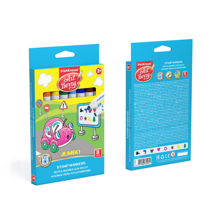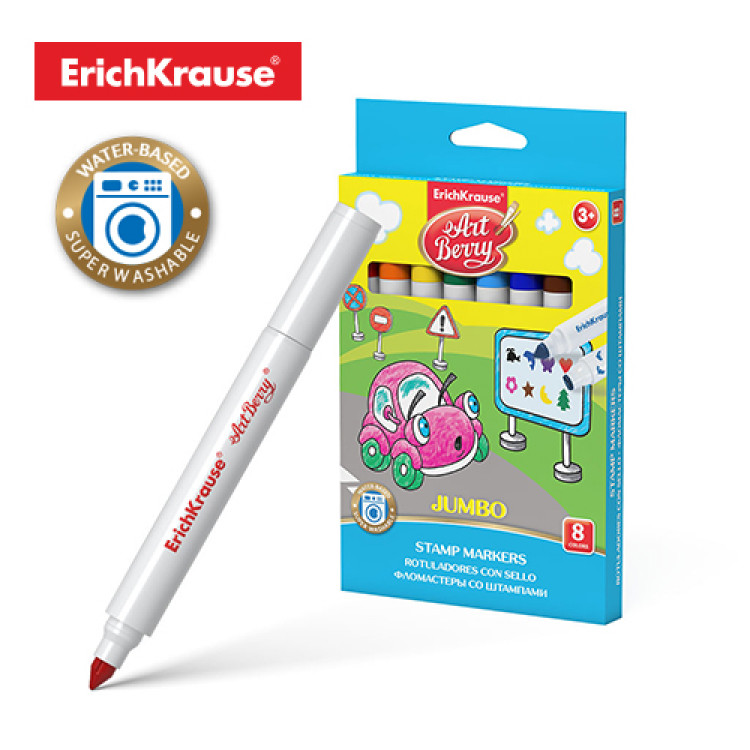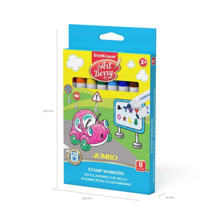 Сет од 8 џамбо фломастери со печат и лесно перење, идеални за деца и креативно цртање.