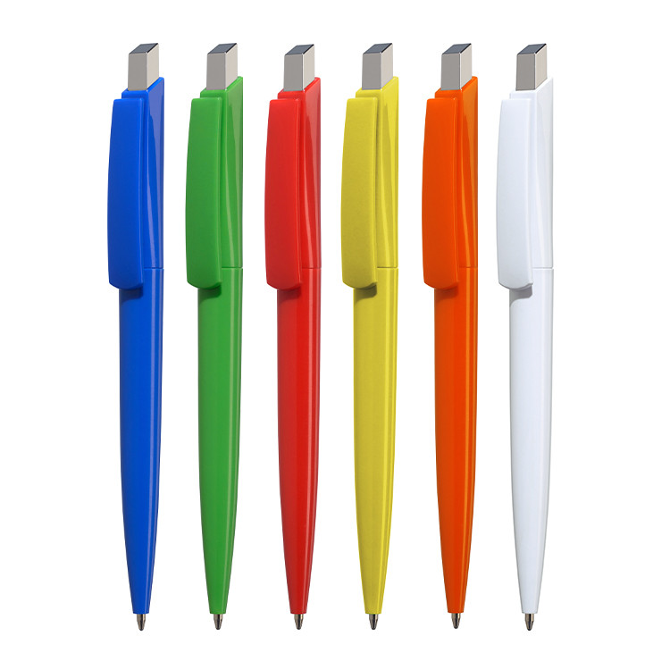 Plastic ballpoint pen with colored clip and silver push button – The ideal promotional product for your brand