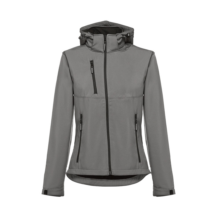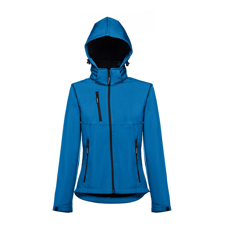 Женска јакна со капа која се отстранува, од 96% полиестер и 4% еластин (280 g/m²).