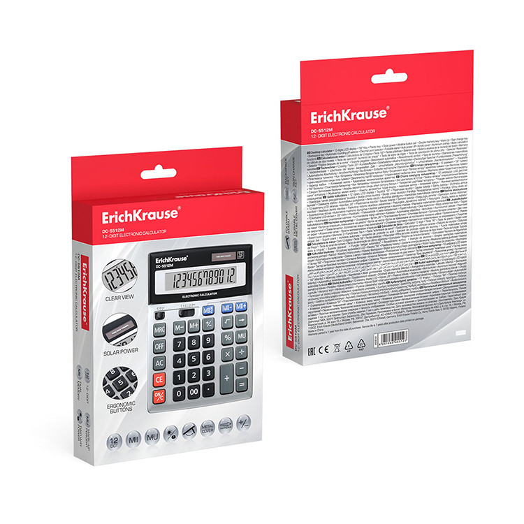 Калкулатор ДЦ 5512, 12 бројки Erich Krause е практичен и функционален калкулатор со јасен дисплеј, идеален за секојдневна канцелариска и финансиска работа.