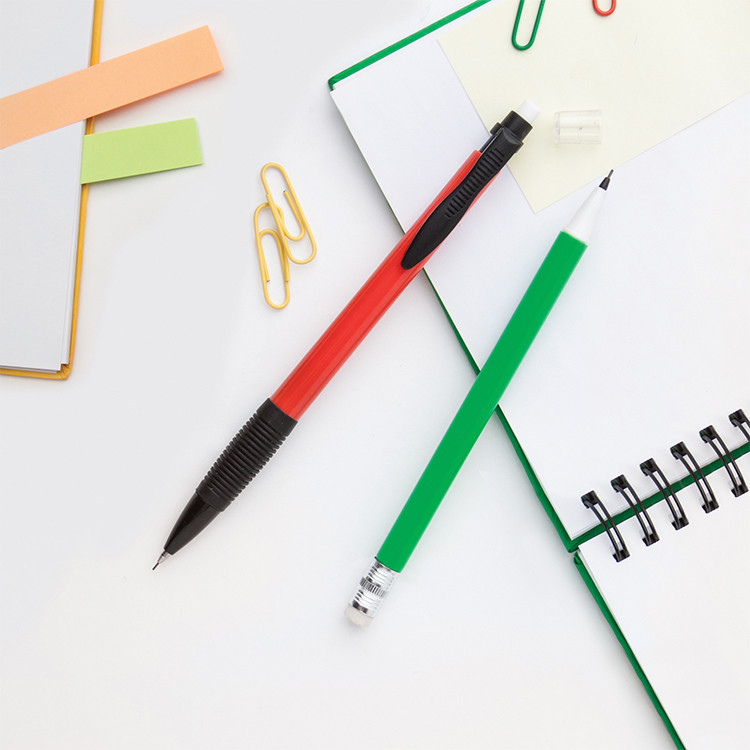 Plastic mechanical pencil with eraser, 0,7 mm.