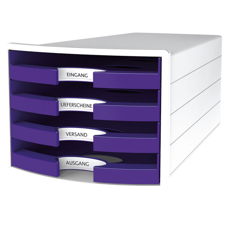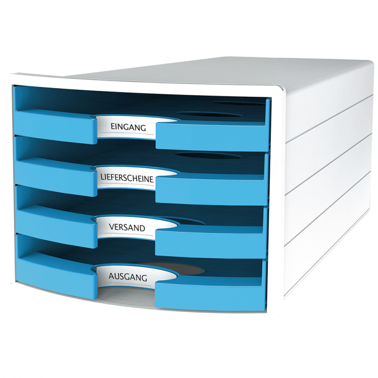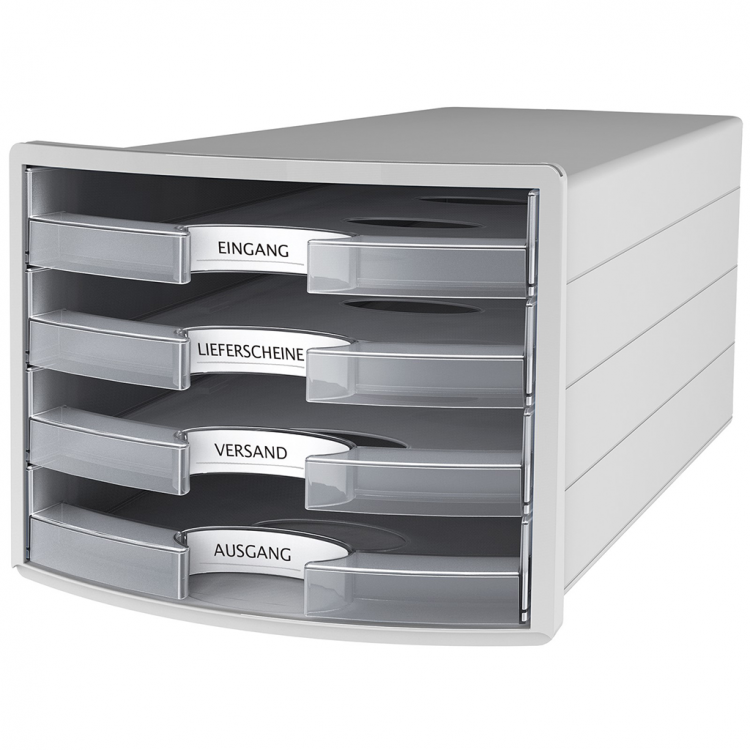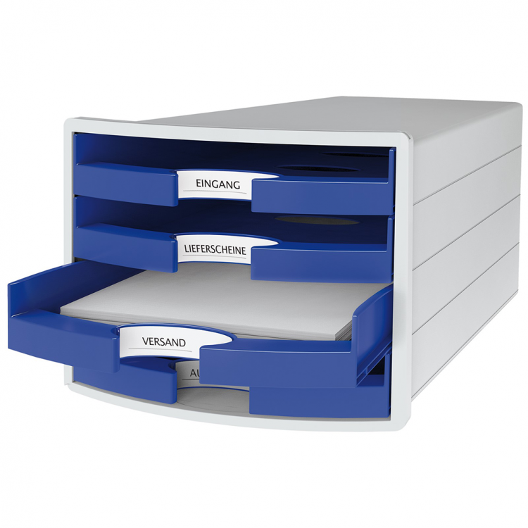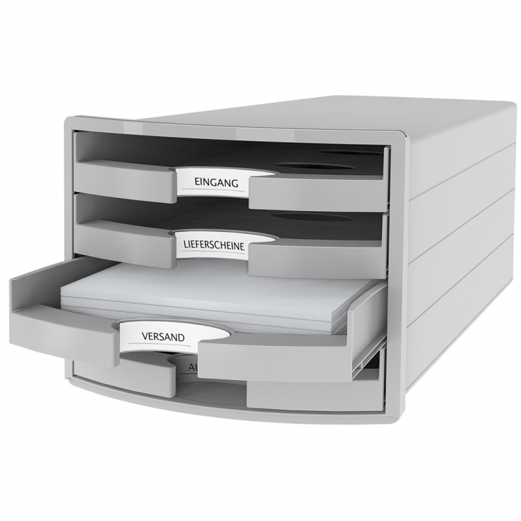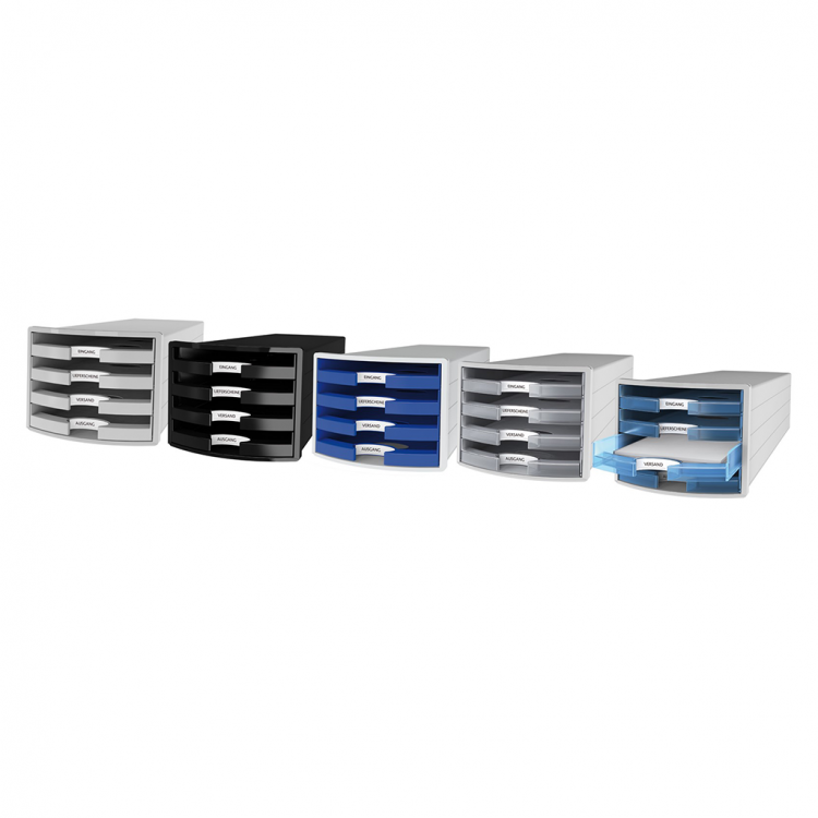 Drawer box IMPULS with 4 closed, spacious drawers, including large, exchangeable labels, for paper formats DIN A4/C4