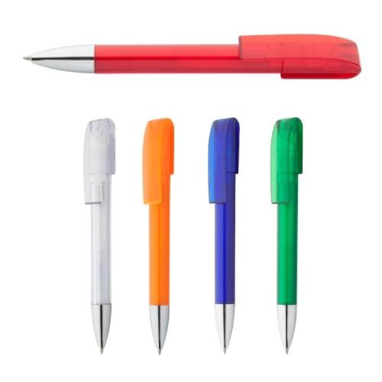 Пластично хемиско пенкало во транспарентни бои,со хромиран врв и сино мастило.Персонализирајте ги вашите пенкала со уникатни принтови. Нудиме креативни решенија за секој вкус. Изразете се со нашите производи!