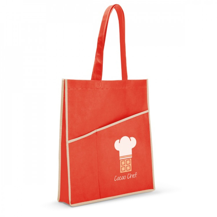 Торба од не ткаен материјал со 2 предни џеба и рачка од 55 см .