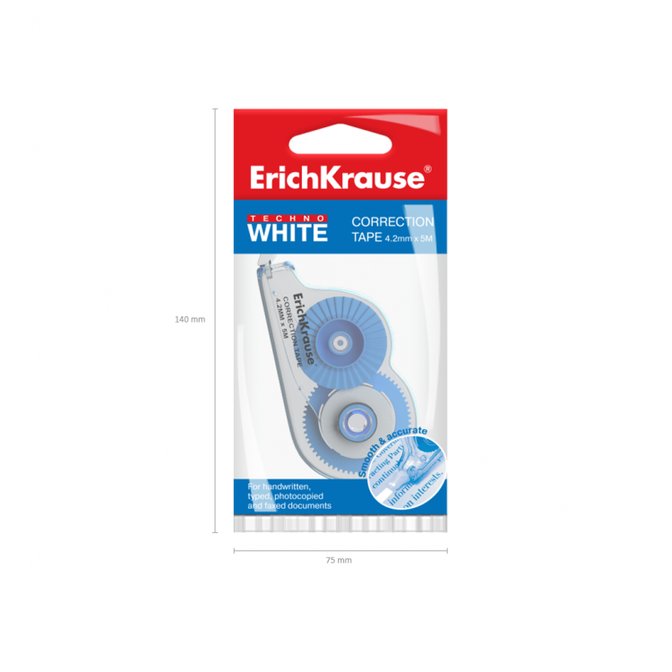 Erich Krause „Техно мини“ е коректор лента што обезбедува корекција без траги и нерамнини и веднаш се суши без дамки. Неговата мала и практична форма го прави идеален за секојдневна употреба – било во училиште, на факултет или во канцеларија.