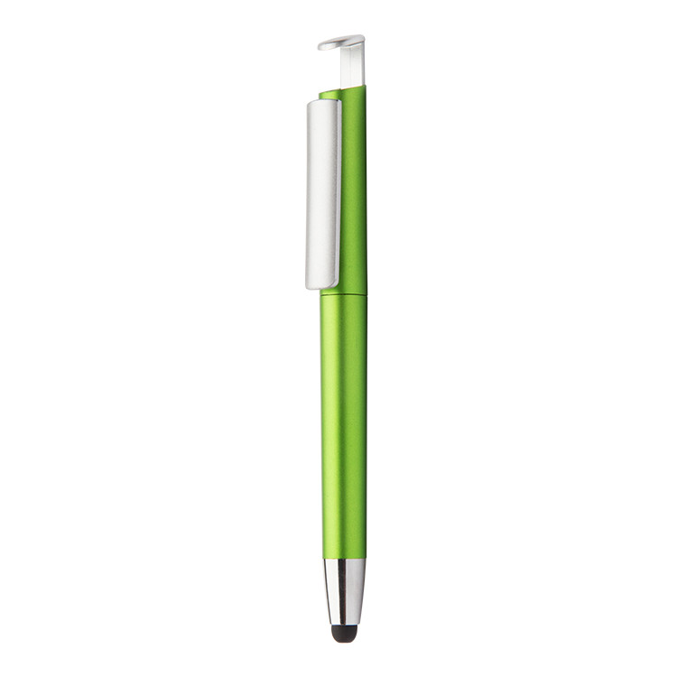 Ова тач пенкало е совршен спој на практичност и модерен дизајн. Изработено од пластика, достапно во привлечни металик бои, ова пенкало има сино мастило, тач врв за екрани на допир и држач за мобилен телефон.