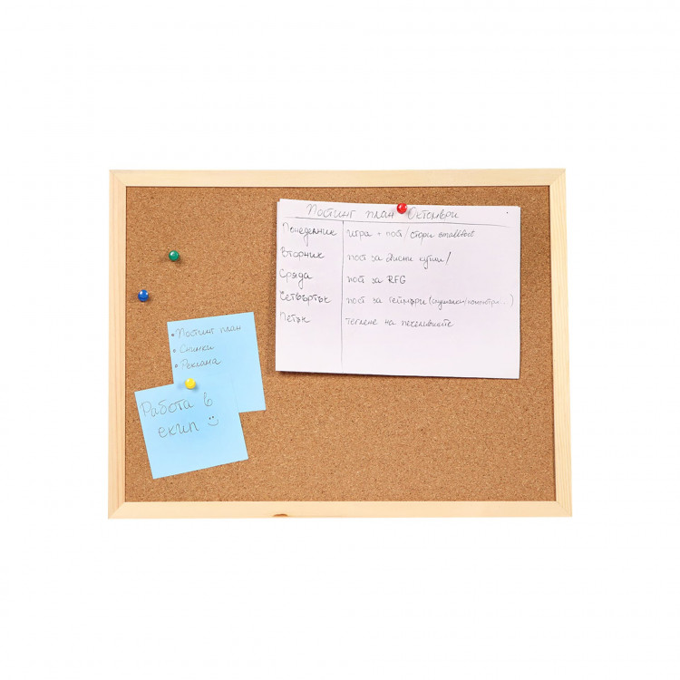 Само – обновувачка плутана површина. Меко плутано јaдро. Дрвена рамка и обезбеден комплет за закачување.