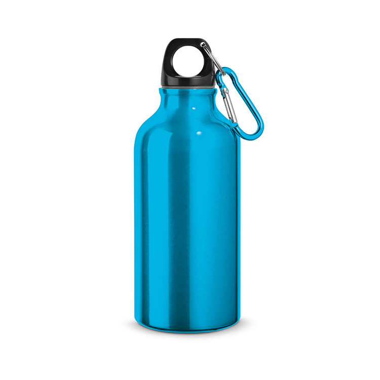 Ова спортско шише е направено од алуминиум и има капацитет од 420 мл, идеално за хидрација додека сте активни. Исто така ова шише поседува алка за закачување. Доаѓа спакуван во кутија со димензии 170х66 мм. Достапен е во зелена, сина, портокалова, сива, сина, црна, црвена и виолетова боја. Доколку сакате да го подарите ова шише испратете ни го логото или името на вашиот бренд, а ние ќе се потруиме да го персонализираме ова шише и да го направиме идеален промотивен подарок.
