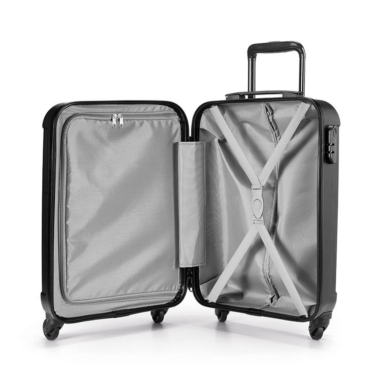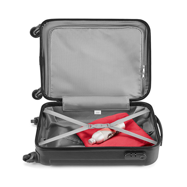 АБС Внатрешност поставена, со поделба. 4 ротирачки тркала. Aлуминиумска рачка со можност за продолжување. Безбедносно заклучување со код. Отстранлива метална плоча со магнет за прилагодување. Капацитет до 31 L. Тежина: 2,25 кг.