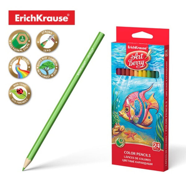 Класични шестоаголни дрвени боици ArtBerry® изработени од избраното дрво со супер-светли нијанси. Специјалната импрегнација на дрво и цврстото лепење на мината обезбедуваат висока отпорност на удар. Мекото дрво и совршено усогласување на мината гарантираат лесно острење со економична потрошувачка на боицата. Мината со дијаметар од 3 мм нежно црта, не ја гребе хартијата и не се распаѓа. Европскиот сертификат за квалитет (ЦЕ) гарантира отсуство на токсични материи.
