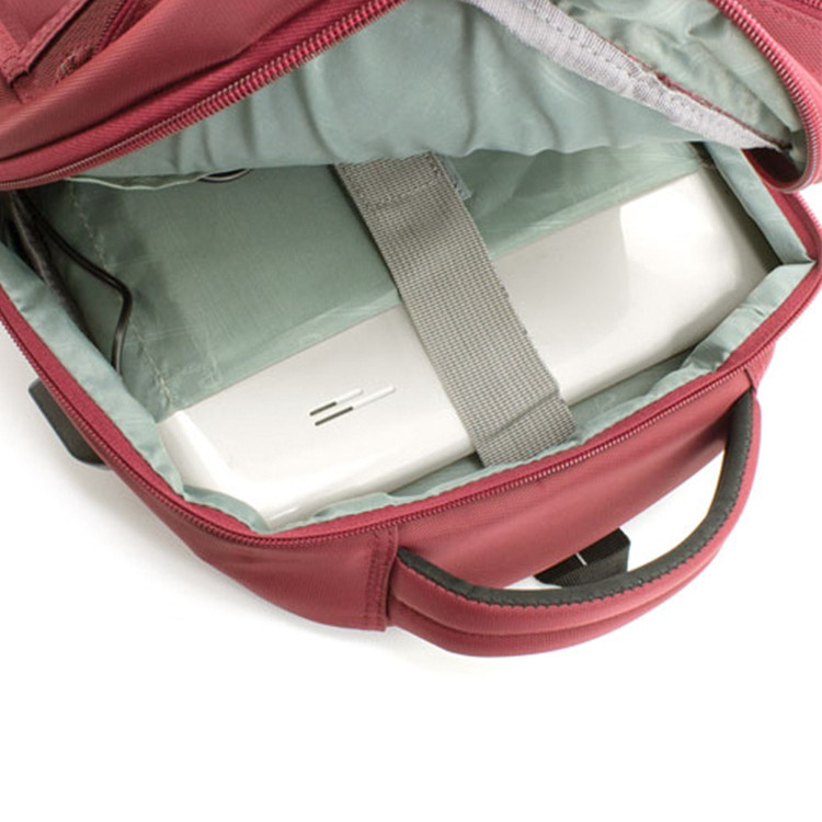 Ранец со голем капацитет, и повеќе распределени прегради, вклучително и USB приклучок од страна за напојување на Вашите уреди, кога внатрешно ќе приклучите резервна батерија.