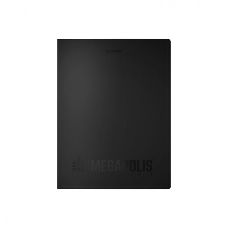 Папка А4, изработена од висококвалитетна пластика со површинска текстура “песок”, на која отпечатоци од прсти и мали гребнатини не се видливи. Наменета за складирање документи.