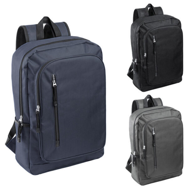 Ранец за лаптоп со 2 прегради за лаптоп до 17 “и таблет до 10,5”. Со три предни џебови (со неколку внатрешни џебови), страничен џеб и прилагодлив страничен дел со еластични ленти. Задниот дел е обложен со систем за поддрша на грбот и дебели рамки. Има излез за слушалки и каиш за носење количка. Додатоците не се вклучени. 330 х 450 х 185 m