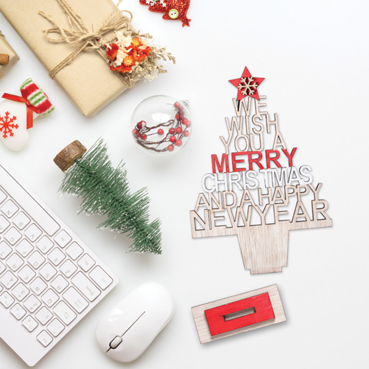 Новогодишна дрвена елкичка за украсување на биро.