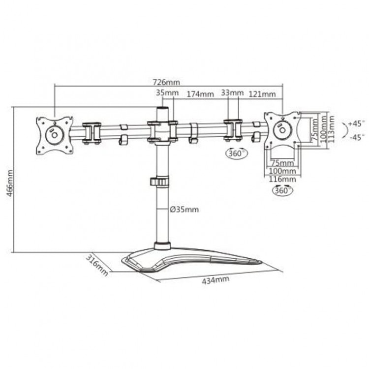 Овој држач за монитори е одлична синтеза на технички, ергономски и естетски дизајн. DT07-T024 ви овозможува да ја исчистите површината на вашата работна маса, истовремено обезбедувајќи ергономска работна положба. Дизајниран е да се користи со монитори од 13”-27”. Со максимална тежина од 8kg за секој крак. Структурата со целосно движење овозможува максимална флексибилност – навалете го и завртете го вашиот монитор до 90° лево и десно за лесно гледање. Неговата структура со топчести зглобови овозможува непречено, без напор ротирање и позиционирање во која било насока, што го олеснува намалувањето на отсјајот и наоѓање на совршен агол на гледање. Можете исто така да го прилагодите мониторот вертикално до саканата положба. Освен тоа, вклучена е и штипка за кабел за организирање на кабли.