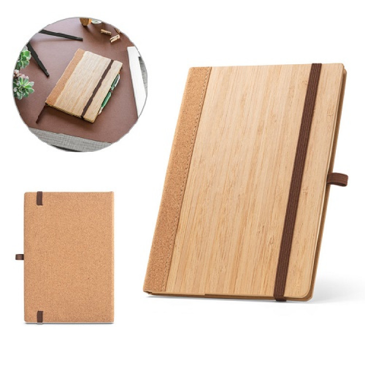 A5 Тефтер во комбинација од бамбус и плута – Природен избор за брендиран подарок!