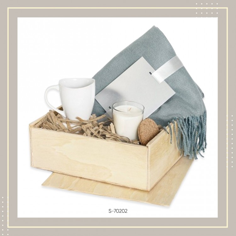 Комплетот Cozy се состои од керамичка кригла од 310 mL, 100% акрилно ќебе и миризлива свеќа во стаклена чаша со капак од плута. Сите производи се спакувани во кутија од иверица со лизгачки капак.