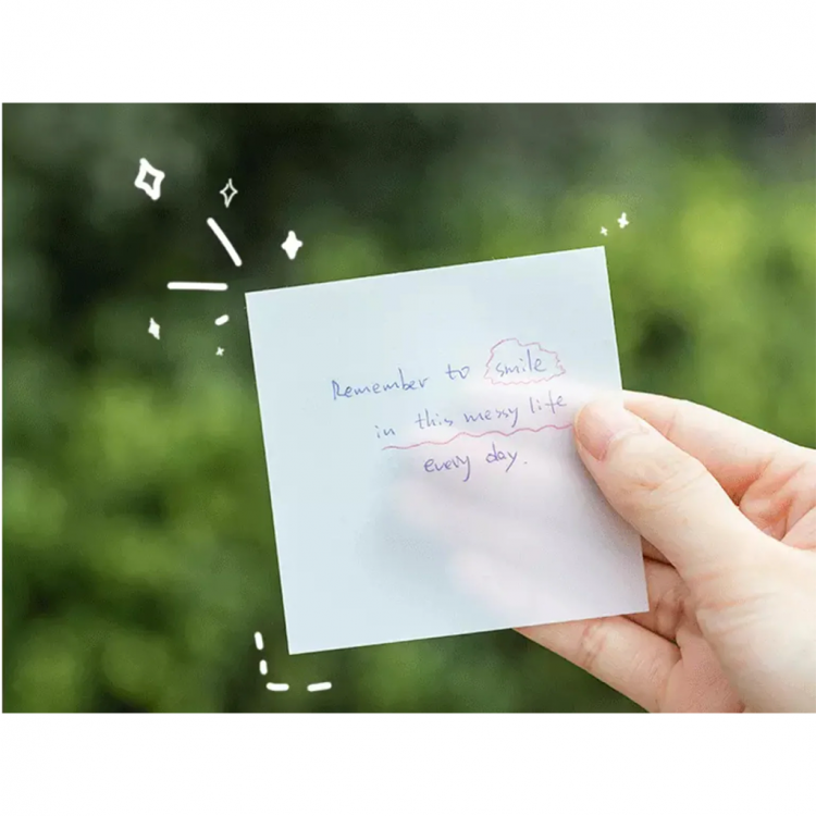 Plastic sticky notes Clear ErichKrause 75×75 mm со 50 транспарентни ливчиња. Идеални за означување без покривање на текст.