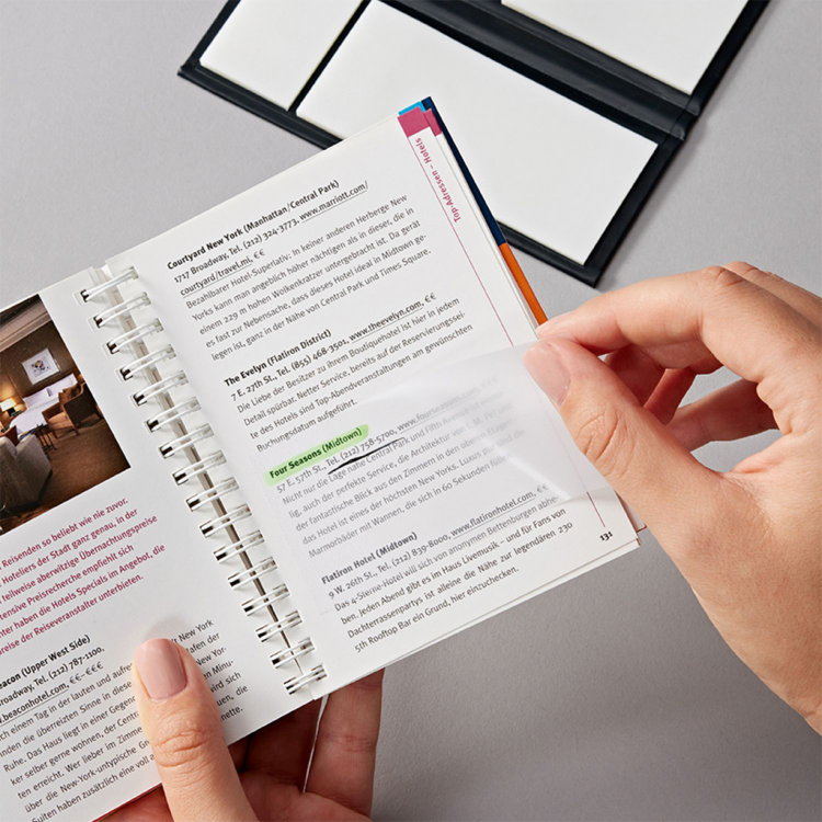 Plastic Sticky Notes Clear од ErichKrause се иновативни проѕирни самолепливи ливчиња од пластика, наменети за белешки и означување без да се покрие оригиналниот текст. Благодарение на транспарентниот материјал, овозможуваат читање под ливчето, што ги прави идеални за книги, документи, скрипти и важни материјали.