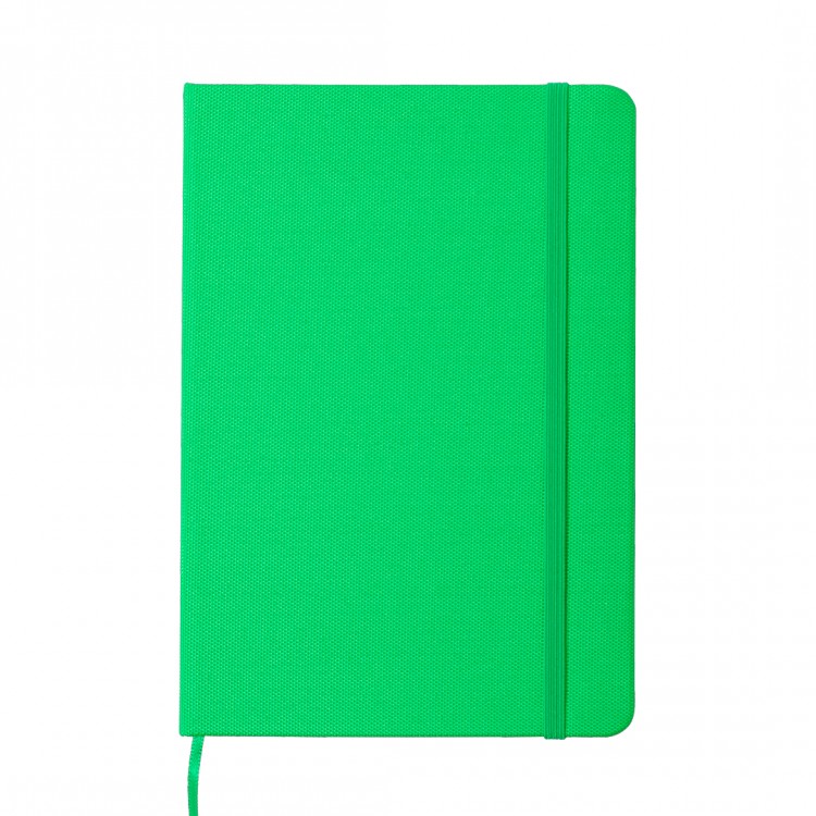 Современ и еколошки тефтер со корица изработена од RPET полиестер, материјал создаден од рециклирани пластични шишиња.Содржи 80 страници со линии, обележувач на страници, како и еластична гумичка за затворање во иста боја.Идеален е за канцелариска употреба, училиште, состаноци или како промотивен подарок со печатено лого.