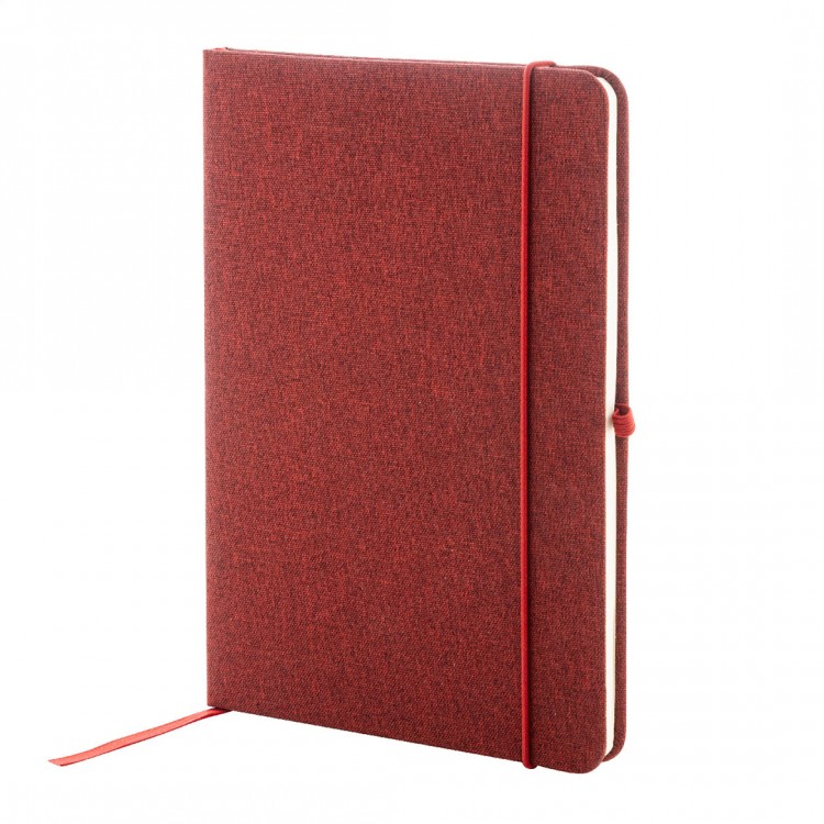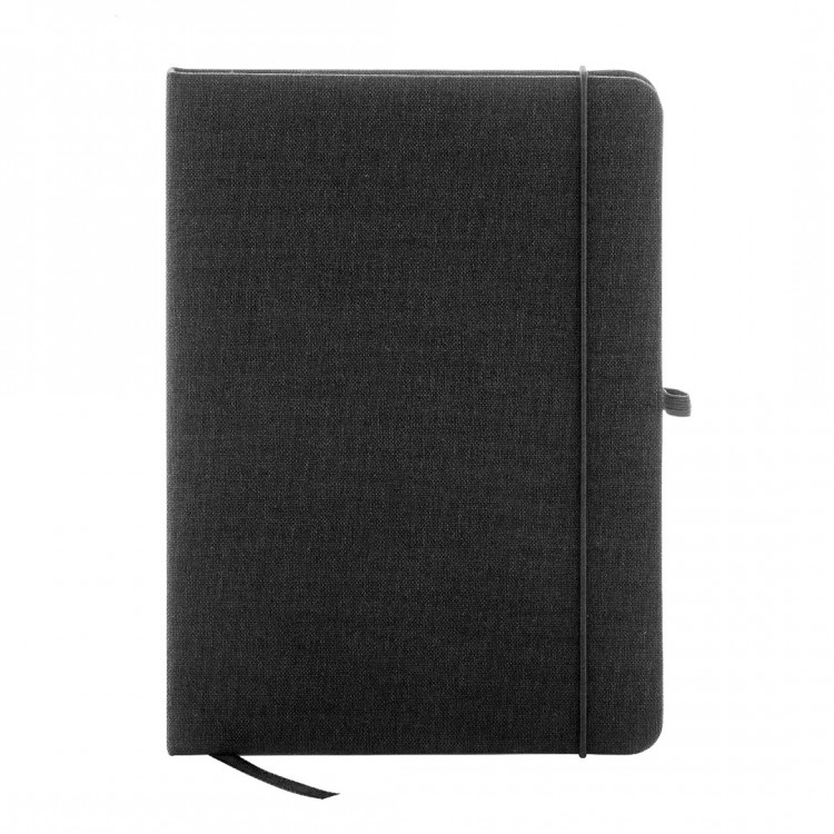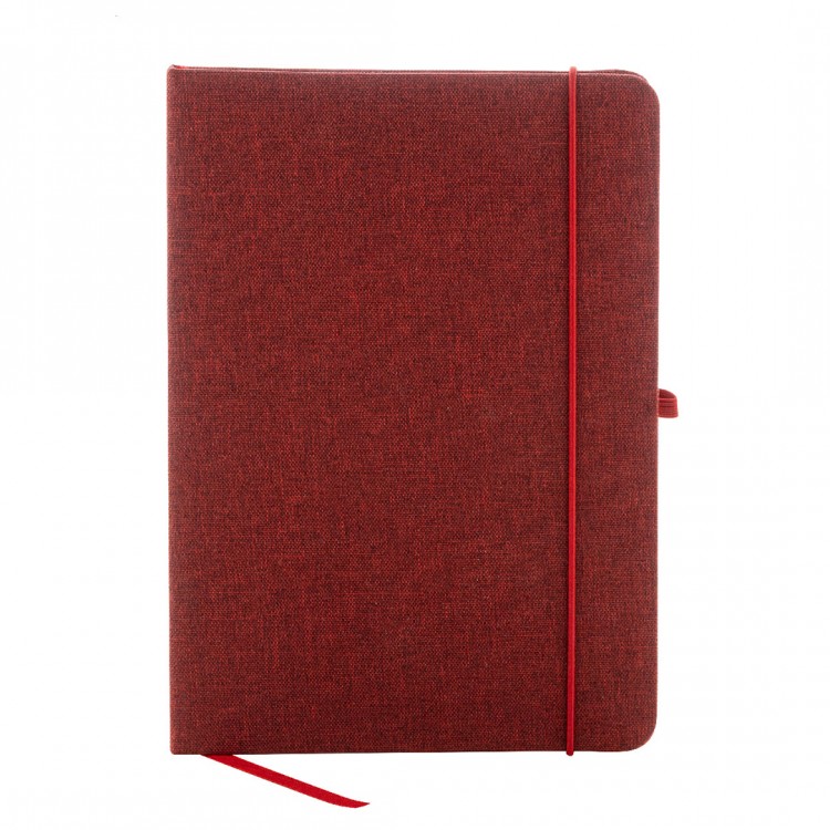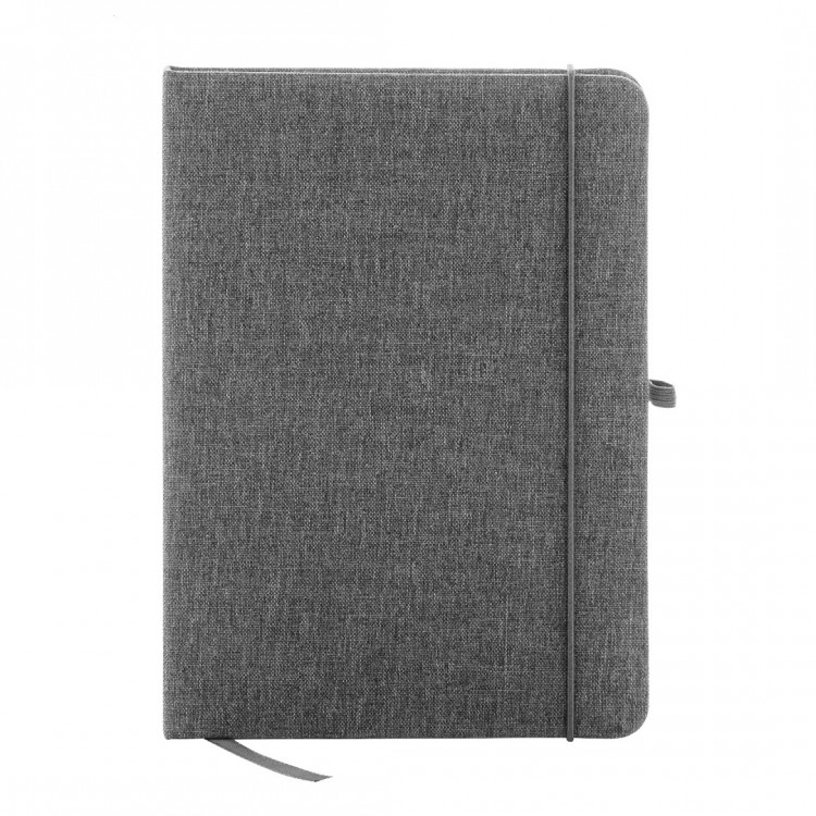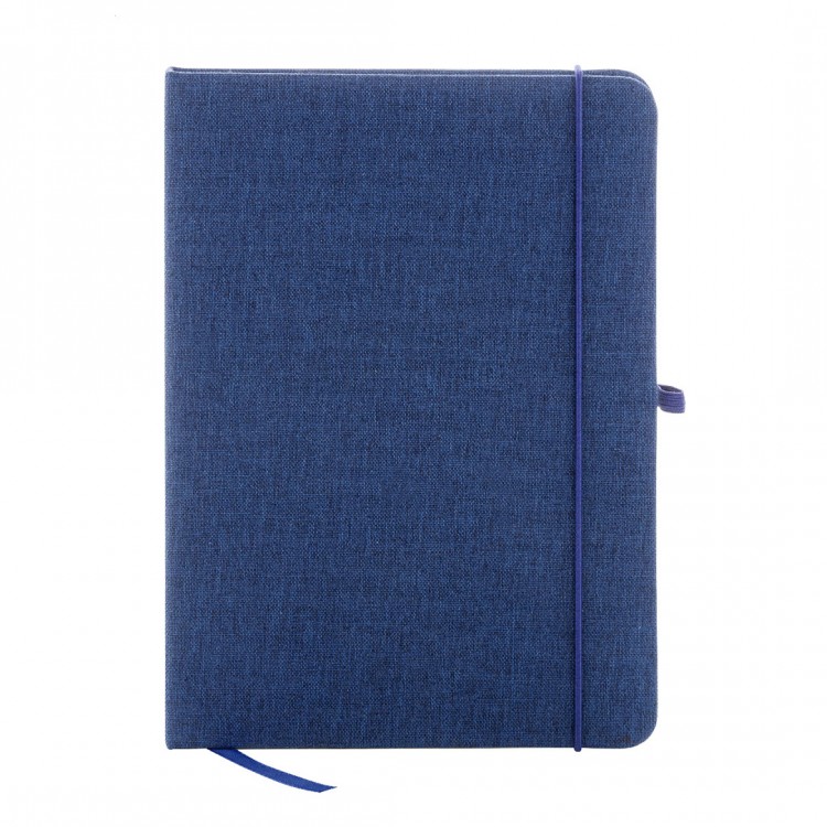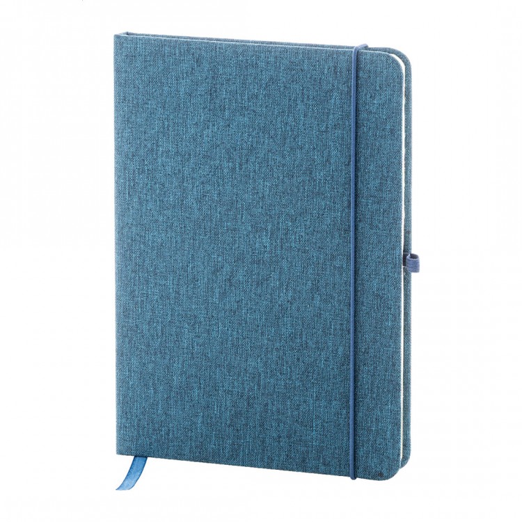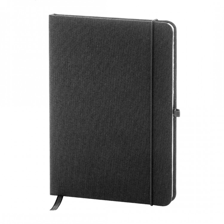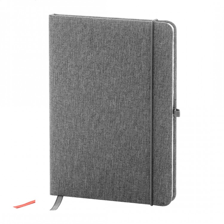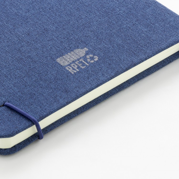 Notebook со корица од 300D RPET полиестер, 80 листови велум хартија. Вклучува ластик за затворање, ознака и држач за пенкало. Формат A5.