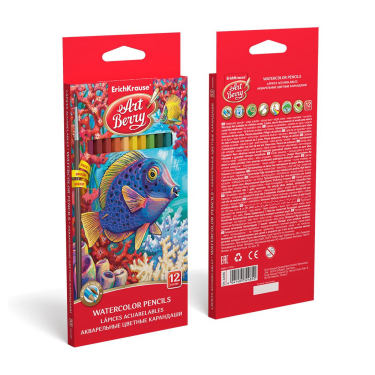 Акварелни дрвени боици ArtBerry® сет од 12 бои со четка, совршени за училиште и креативно сликање.