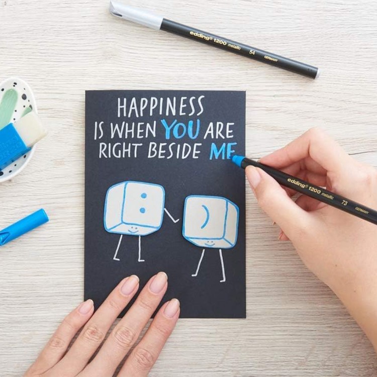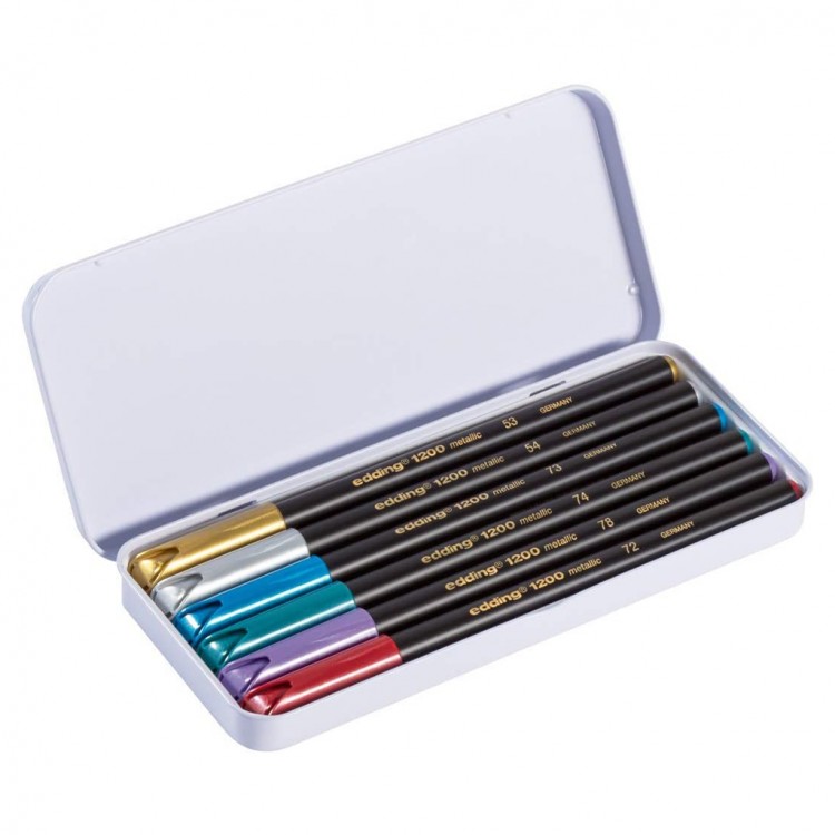 Фломастерот металик боја 6/1 Edding 1200 нуди интензивни и сјајни бои за креативно цртање и пишување, совршен за уметнички проекти, честитки и декорации.