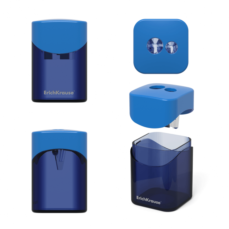 Острилката дупла со кабинет Wave Erich Krause нуди практично и чисто острење на моливи со две големини, со вграден контејнер за отпад за удобна и секојдневна употреба.